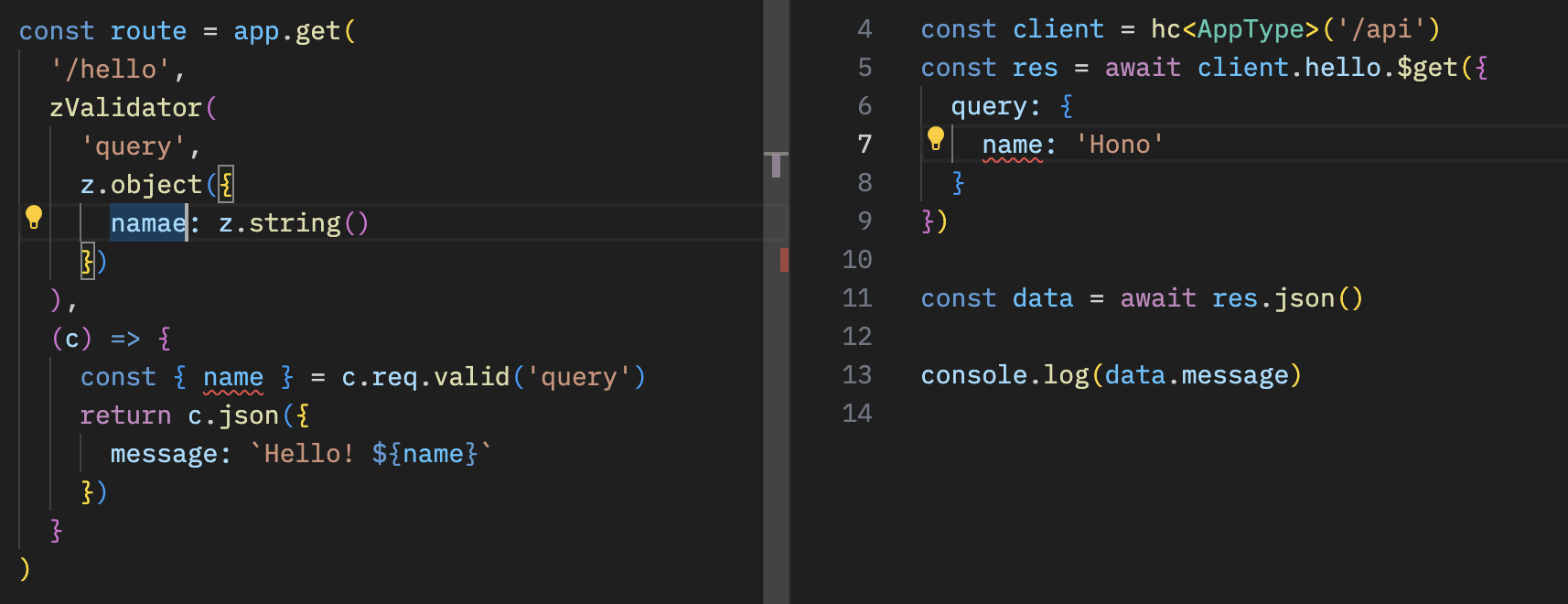 Hono's RPC feature allows you to share API specs with little change to your code. The client generated by hc will read the spec and access the endpoint type-safety.